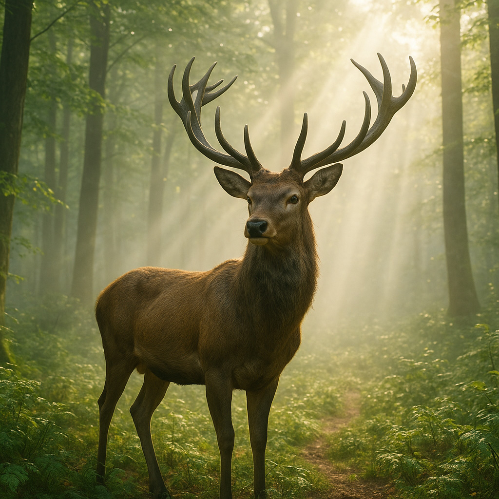 Majestic Deer in Mist Prompt usato A hyper-realistic image of a majestic deer…